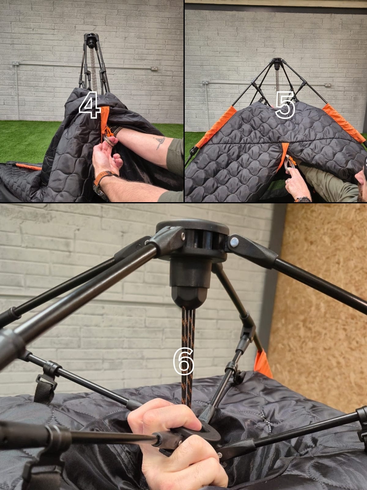 3. Extend each leg to the tent's corners, ensuring they lock into place.