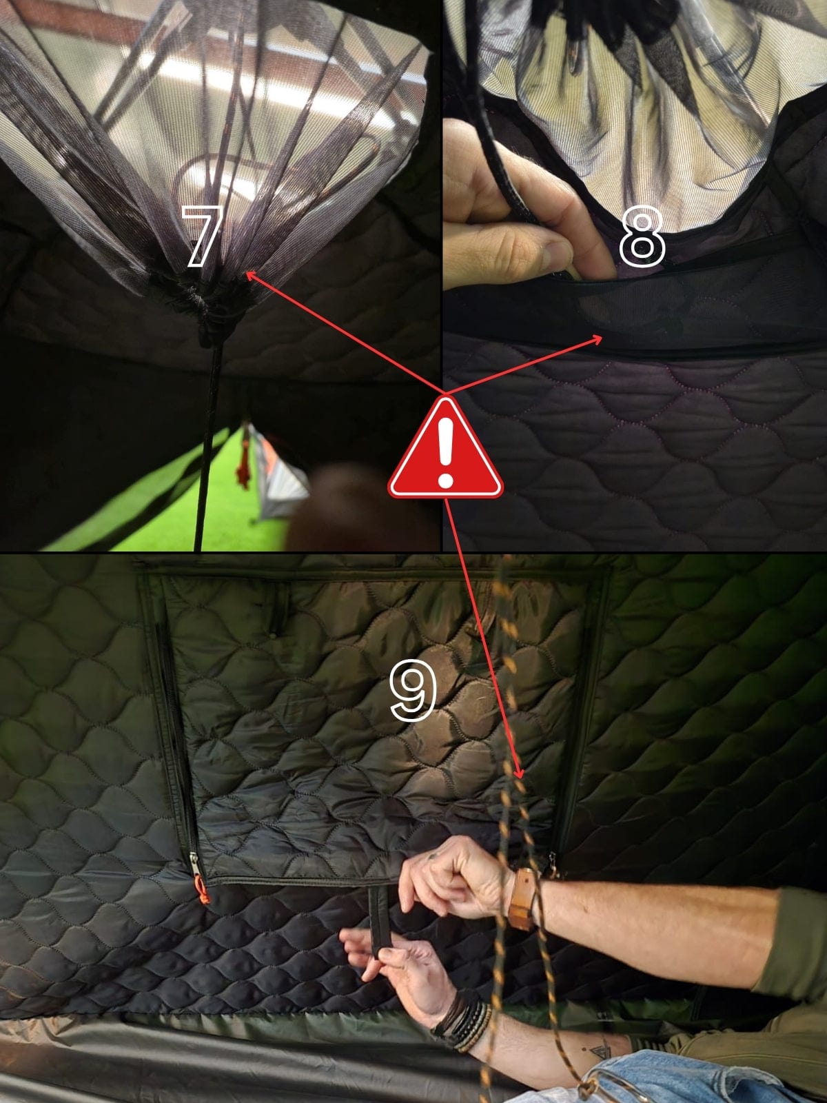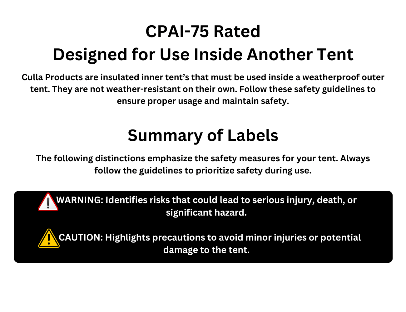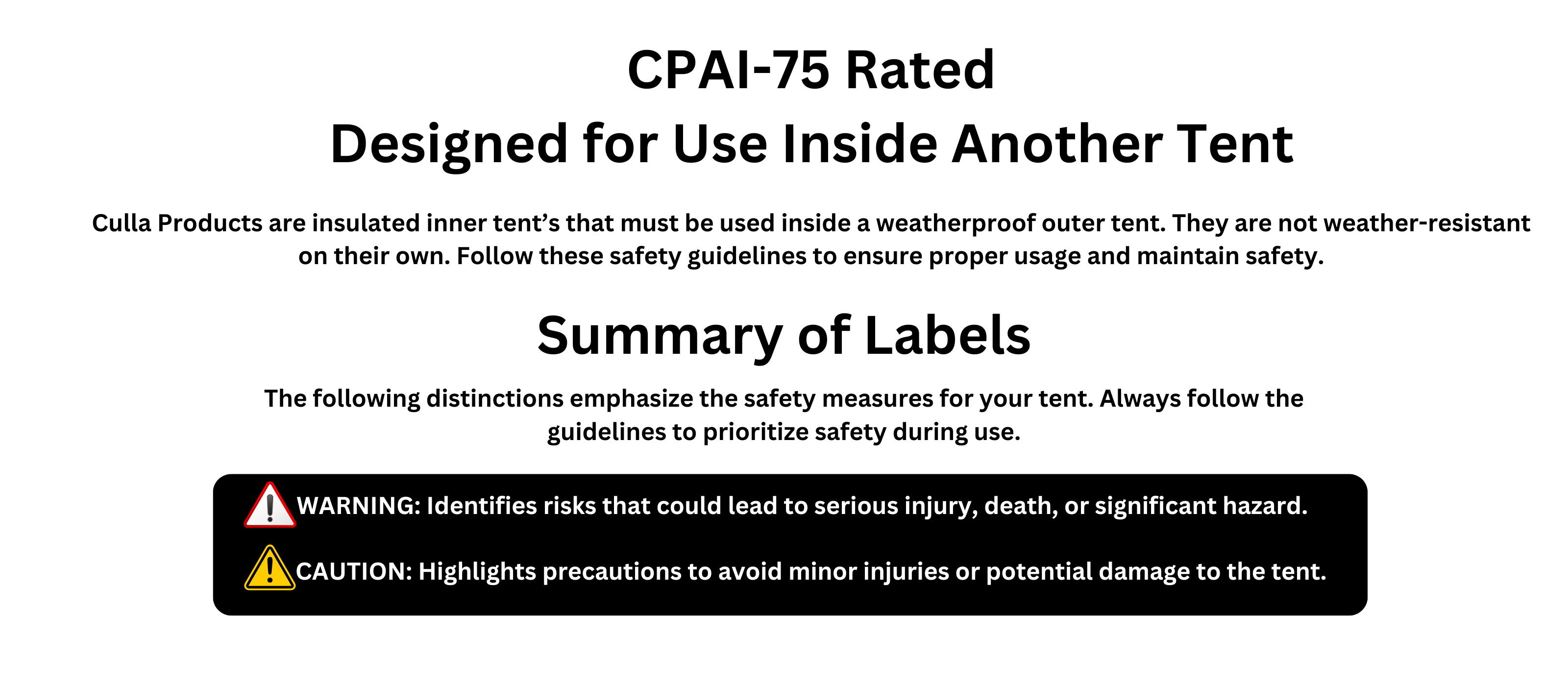 - Fire Hazard: The tent is not fireproof. Keep open flames, stoves, and heat sources away.